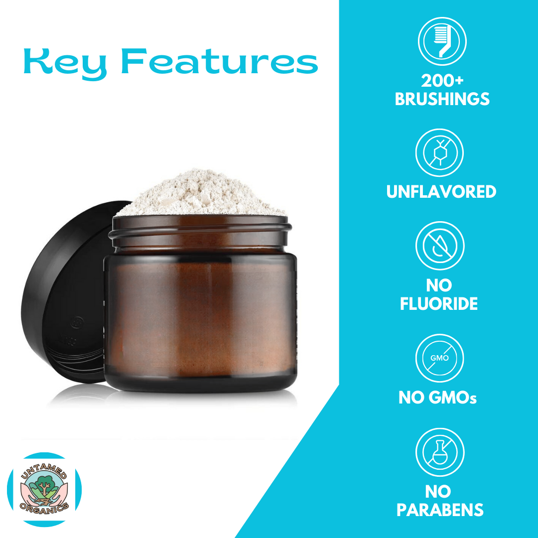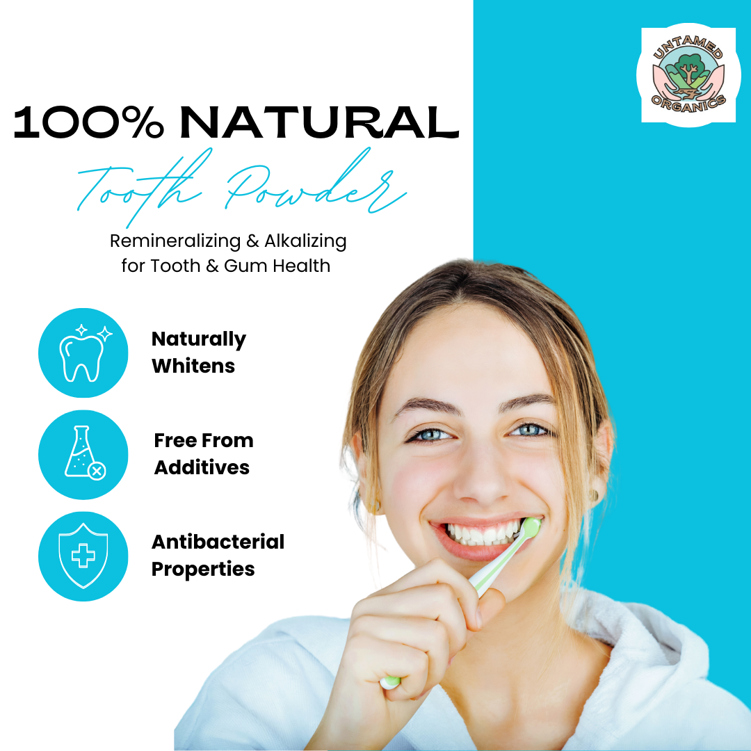 Untamed Organics brings you a natural tooth powder crafted with care and inspired by our commitment to safe, effective oral care. Each jar reflects our dedication to creating products that promote a healthy smile while staying true to nature. Handcrafted in small batches, this tooth powder is free from synthetic additives, ensuring your oral health is supported with only the best ingredients.